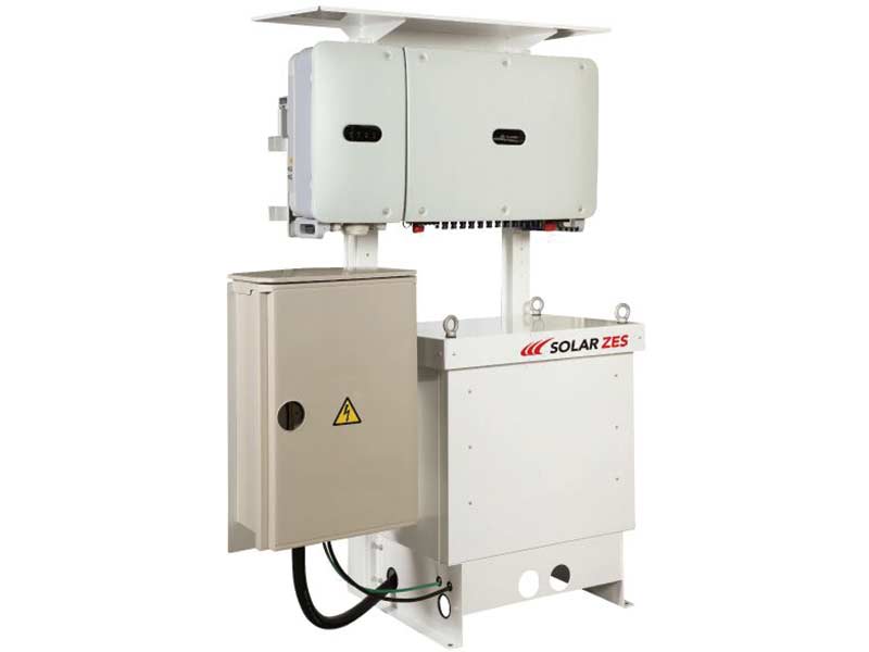 パワーコンディショナ・変圧器・制御装置を一体化した自家消費型PVシステム。