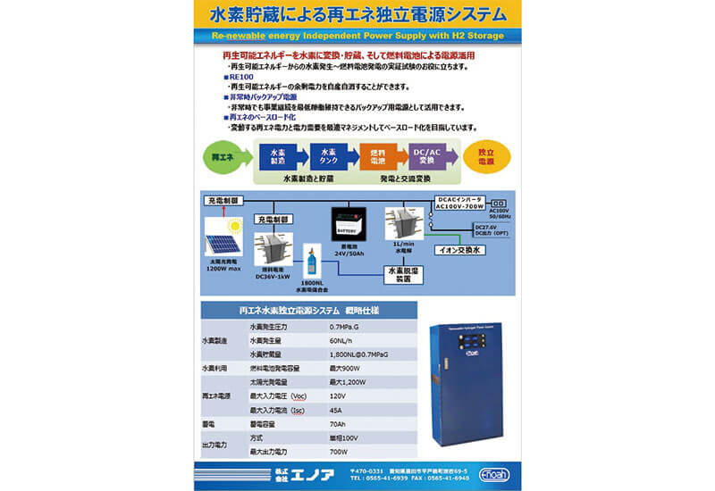 再生可能エネルギーを水素に変換して貯蔵、必要に応じて燃料電池を発電することで緊急時のバックアップ電源として使用できます。 また水電解による水素発生と燃料電池の実証試験にも役立ちます。