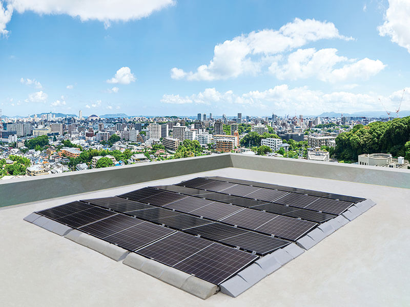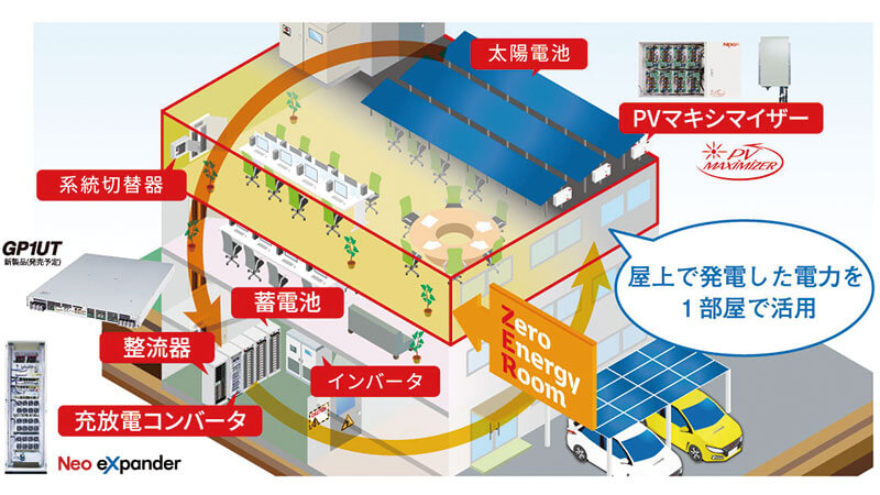 1部屋から導入できる自家消費システム「PV Oasis」です。無理なく小さく、既設事務所の1部屋をゼロエネ化、また非常用の避難所として活用できる、お求めやすい自家消費の新しい形をご提案します。