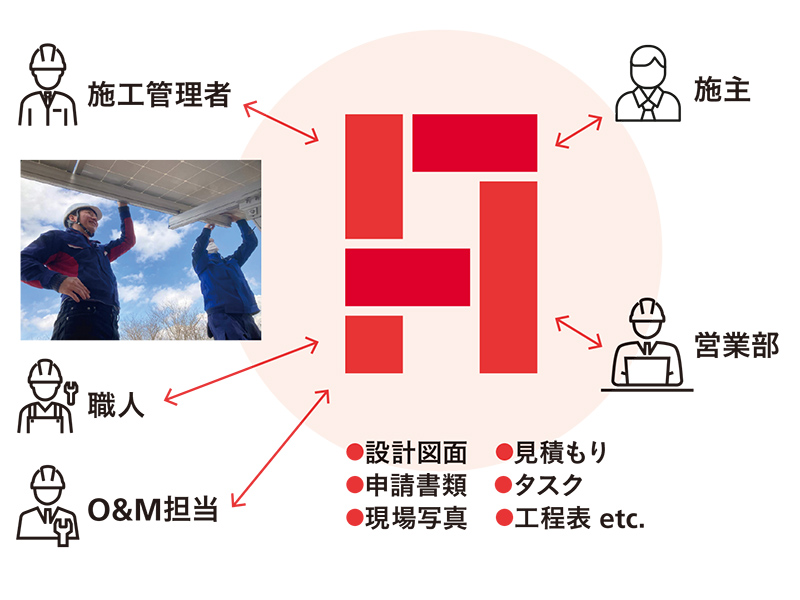 「営業、施工、設計がバラバラに情報管理しており、部署間で情報共有するのに非常に時間と手間がかかっていた」。同社再エネ事業本部EPC事業部営業課の坂元大翼主任は、そう振り返る。