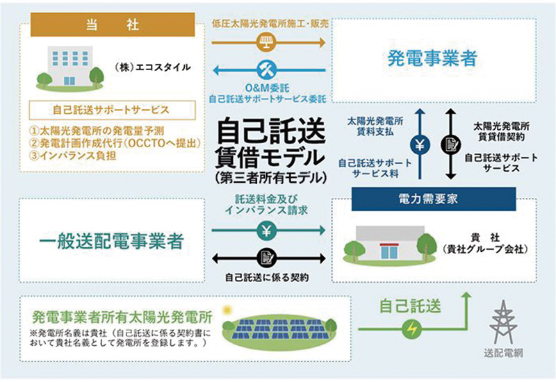 電力需要家が発電事業者と直接、長期間の電力購入契約を締結するコーポレートPPA。電力需要家は太陽光発電所の設置に係る初期投資費用の負担なく自己託送による再エネの直接利用が可能になる。