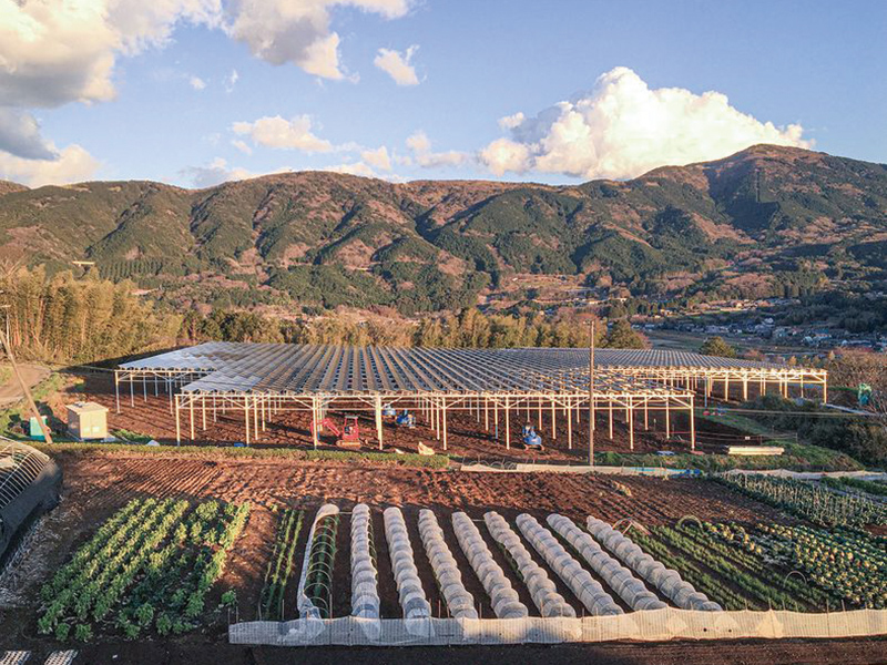 農地の上にソーラーパネルを使用した太陽光システムを導入することで、営農しながら売電事業による収入を得ることができる新しい土地活用法。申請から営農サポートまでワンストップで提供する。