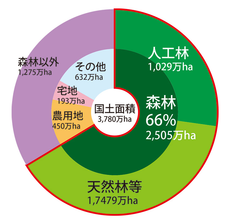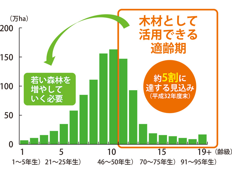 日本は、国土の3分の2にあたる約2500万haが森林だ。そのうち約1000万haを人工林が占めている。そして人工林の約半数が、木材として利用可能な時期(主伐期)を迎えようとしている。国内の森林資源は、「切って、使って、植える」という循環的利用が求められる時代に入ったといって良い。