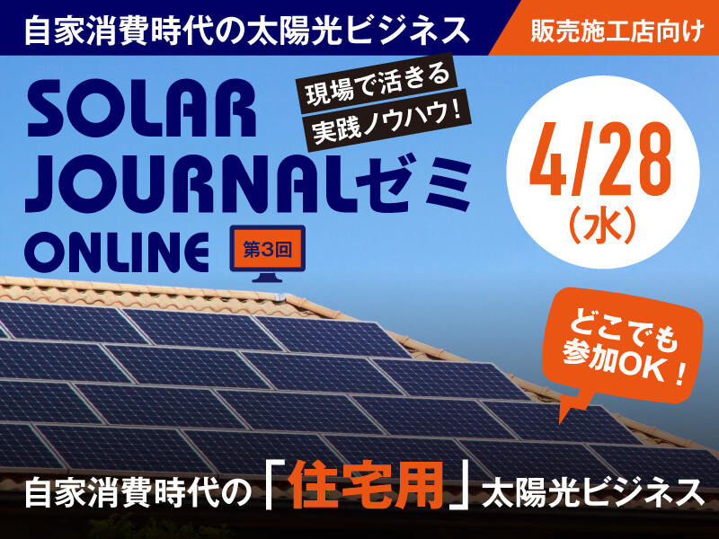 自家消費時代の住宅用太陽光で勝つ! オンライン勉強会を4/28(水)に開催