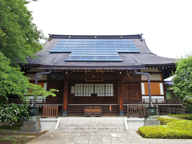 東京都中野区にある真言宗豊山派福蔵院。歴史ある寺への太陽電池の設置に、反対する意見はなかったのか。また参詣者の反応はどうなのか。関係者に話を聞いた。