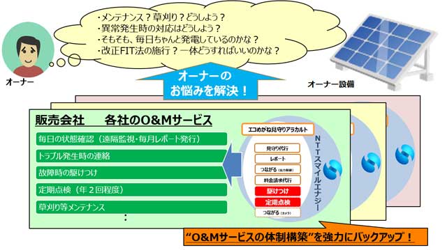 NTTスマイルエナジーでは、「今後もアラカルトのサービスラインアップをさらに充実させ、販売会社様ととともに、さらなるO&M市場の拡大と再生可能エネルギーの普及に貢献してまいります」と話している。今後の展開にも、期待が高まる。