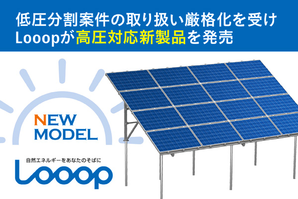 今年度から太陽光発電の買取価格は32円/kWhと下がり、さらに50kW未満低圧分割案件の取り扱いは厳格化。環境・エネルギーベンチャーのLooopはそれらの対応として低価格の高圧契約対応モデル「高圧MY発電所キット」を開発・販売した。