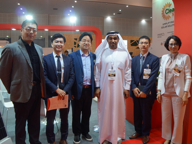 「サンアースソーラージャパン社」は50年以上続くソーラーパネル製造の老舗企業で、中国本社からも総経理がドバイ入りし、長年にわたる実績をアピールした。