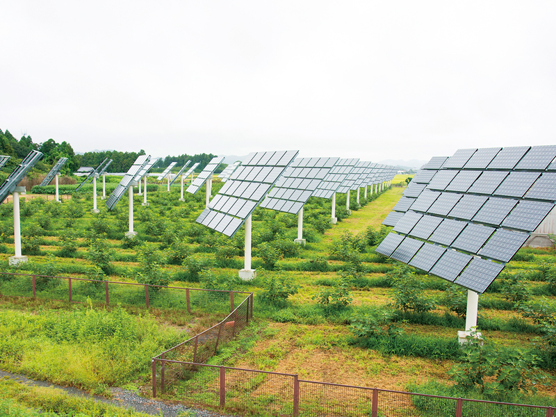 発電量が固定式の1.5倍に!? ソーラーシェアリングとしては国内最大級の規模で、追尾式の太陽光発電システムを設置している、福島県いわき市にある農園「アグリパークいわき」で話を聞いた。