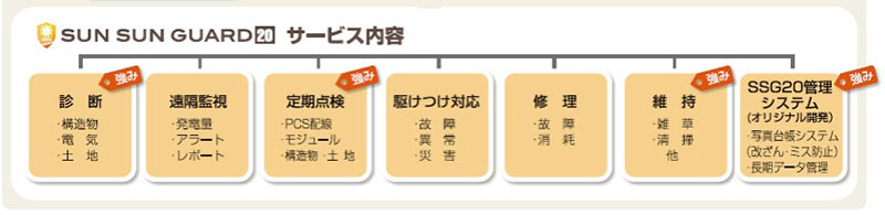 「SSG20 管理システム」は、発電開始からの20年間、O&Mを安全、安心、確実に継続することを目的としたソフトウェアだ。クラウドサービスとIoTを活用することで、太陽光発電所の物件データや点検データに加え、保証書や敷地図など、太陽光発電事業に関わる情報を全てクラウド上に保存し、データ消失のリスクを回避できる。また、タブレット・スマートフォンでの操作も簡単で、点検・検査忘れもなし。報告書も自動作成され、作業者の業務負担も大幅に軽減できる。