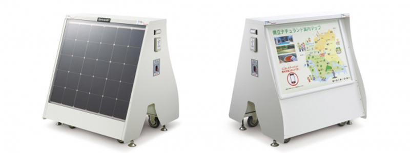 シャープ株式会社は、太陽光発電によりスマートフォンや携帯電話を手軽に充電できる「移動可能型」ソーラー充電スタンド<LN-CB1AA>を、2017年12月6日に発売した。