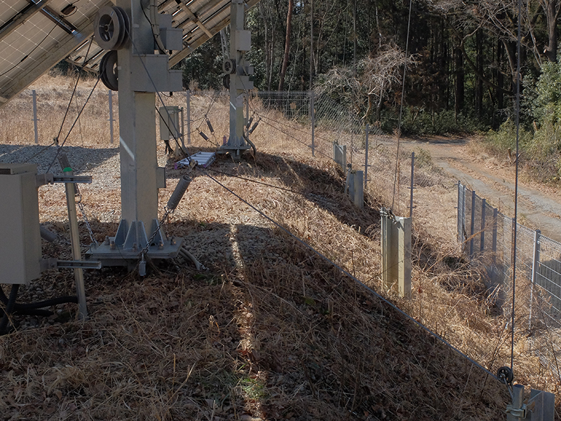 可動するシステムであるためメンテナンス性も気になるところだが、従来型の二軸追尾式と比べてメンテナンスコストは5分の1以下で済むとのこと。ワイヤーやバネなどのパーツは汎用性の高いもので構成されており、大半がホームセンターでも入手可能なものなので、万一のトラブルにも迅速に対応することができるという。