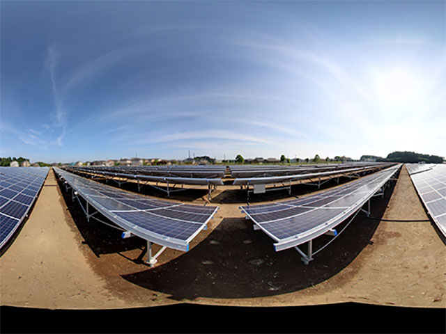 このコンテンツでは、インターネット上で「いつでも」「どこでも」発電所を360°様々な角度から見学することができる。見学のできる発電所は、①平らな土地に建てられた一般的な産業用太陽光発電所、②斜面に設置された発電所、③メガソーラー発電所、④農地に設置された発電所の4種類。