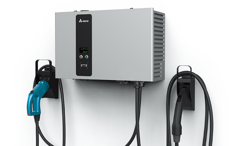 デルタならではの高い変換効率はもちろん、使用環境に配慮したデザイン性の高い製品もラインナップ。EVの普及を強力にサポートする。