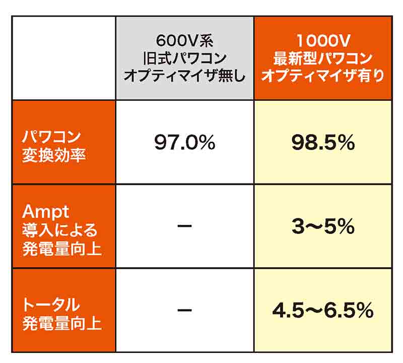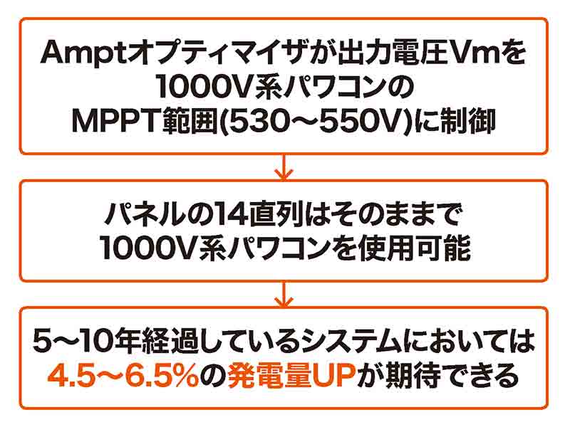 Ampt追加により、パワコン変換効率・発電量がアップ!