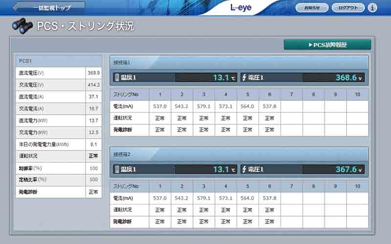 ストリングレベルでの発電状況をモニタリングし、発電異常を見逃さず、異常時には迅速に通知。売電損失を最小限に抑える。