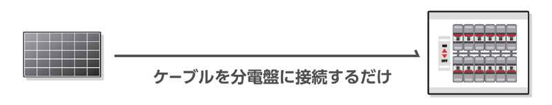 パネルごとにパワコン・接続箱の機能を備えているため、従来のような接続箱や大型パワコンは不要。家電をコンセントに繋ぐような感覚で、パネルからのケーブルを既存の分電盤(ブレーカーボックス)に繋ぐだけで、家全体に送電できる。