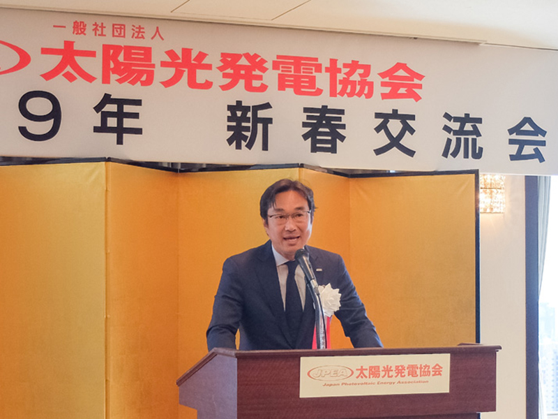 日本最大の太陽光発電業界団体である太陽光発電協会(JPEA)は1月22日、東京都内で「2019年 新春交流会」を開催した。会員企業トップをはじめとする業界関係者220名が集まり、太陽光発電産業のさらなる発展を誓い合った。