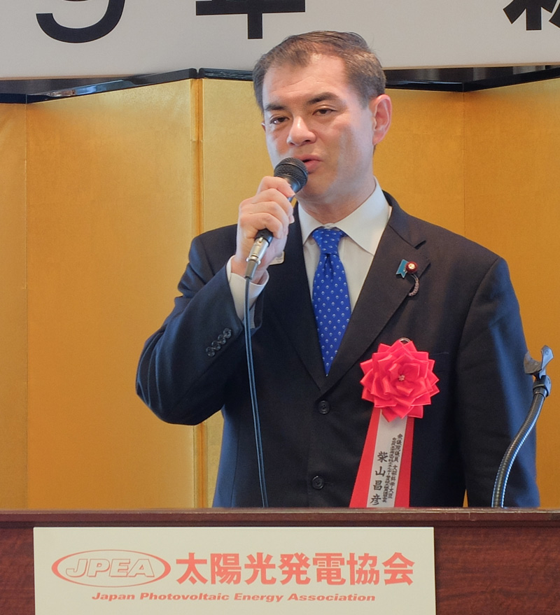 柴山氏は再エネ議連を代表して、「昨年は未稼働案件の取り扱いについて大変な心配をかけたが、経済産業省との真摯な意見交換等によって、遡及適用に経過措置が設けられるなど一定の尽力ができた。これからも、よりいっそう国内基盤を充実させ、事業者の皆様の努力にしっかりと応えていきたい」と語った。