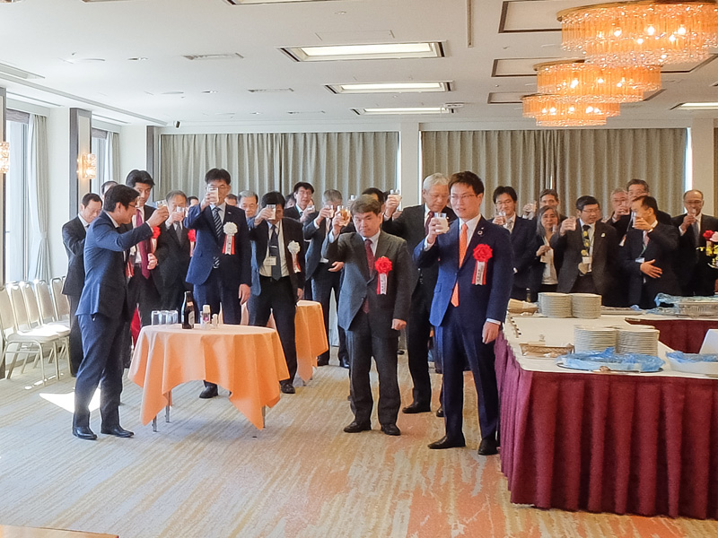 来賓挨拶の後は、自由に情報交換が行われ、笑顔の絶えないひとときとなった。JPEA 2019年 新春交流会は、主力電源化に向かう再エネのトップランナーとして、太陽光発電の未来に明るい希望を抱かせるものだった。