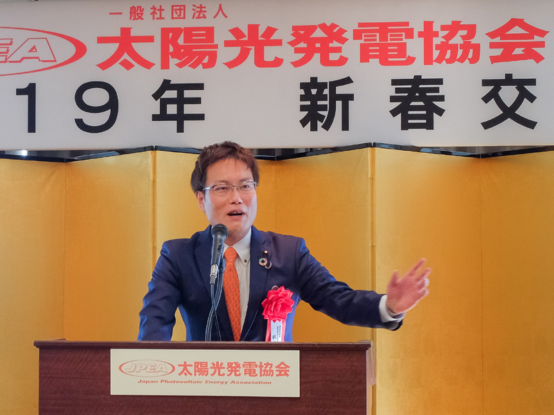 太陽光発電協会(JPEA)の新春交流会が盛り上がった。産業界・官界・政界それぞれのキーパーソンが挨拶に立ち、2019年の太陽光発電を展望した。主力電源化に向けて、どんな年になっていくのか──JPEA 新春交流会に、その答えを探る。