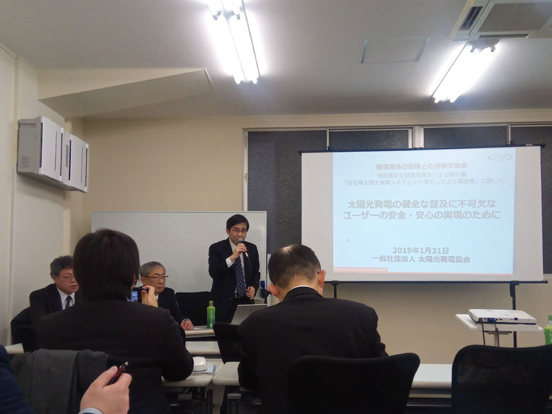 1月31日、太陽光発電協会(JPEA)と日本電機工業会(JEMA)が共同で、報道関係者向けの説明会を開催した。これは、1月28日に消費者庁が公表した、住宅用太陽光発電の火災事故に関するまとめを受けてのものだ。