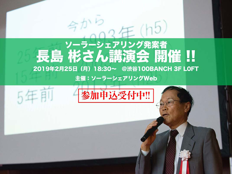 太陽光発電と農業の未来を拓く技術として、注目を集める「ソーラーシェアリング」。今回、その発案特許者である長島彬さんを招いての講演会が、2/25(月)に開催決定! 参加申し込みはコチラから!