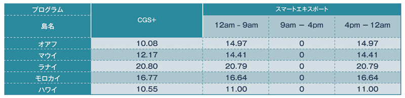 送った電力の買取価格は島別で異なるが、オアフ島では1kWh当たり14.97セント、ラナイ島では20.79セントとなっている。買取価格は2022年10 月22日まで固定されている。