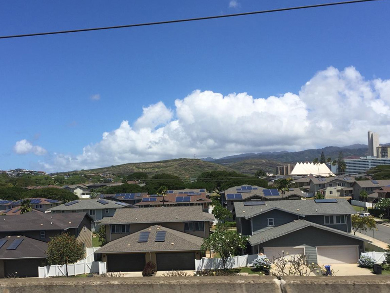 アイキャッチ:屋根置き太陽光発電がいたるところで見受けられるオアフ島、出所:J.Movellan