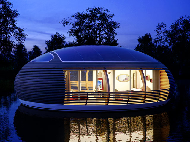 イタリアの建築家・ジアンカルロ・ゼマがデザインした、環境に優しい「ウォーターネスト100」と呼ばれる浮島型の住居。
