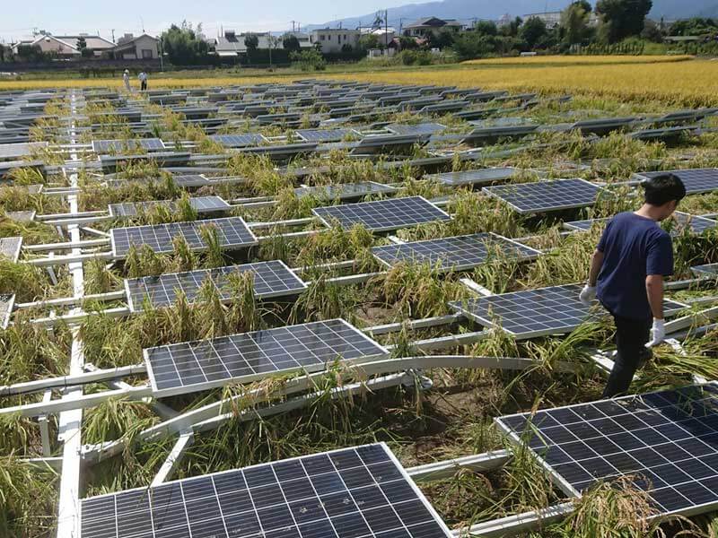順調な事業展開をしてきた小田原かなごてソーラーシェアリングであったが、平成30年9月30日に関東を襲った台風24号で、米のソーラーシェアリングが全倒壊する事態が起こった。