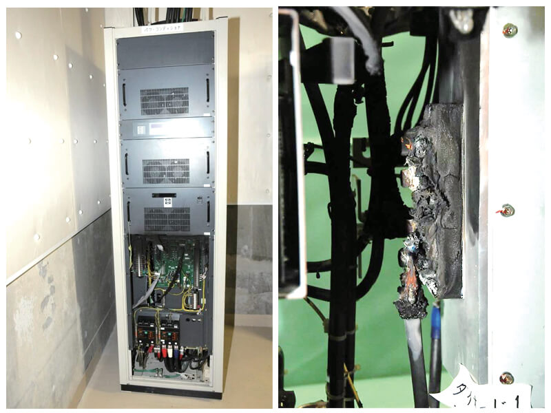 事務所ビル地下1階の電気室に設置された感知器が発報。電気室の自動消火装置は作動せず、室内に火炎はなかったが、きなくさい臭いがただよっていた。