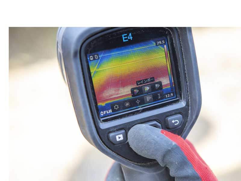 気候や場所を選ばないのも大きなメリットだ。取材当日は春の嵐で、八街市名物の”やちぼこり”が起こっていた。最近ではドローンによるサーモグラフィ点検も出てきたが、一定以上の強風では使えない。また、高速道路や鉄塔など安全上問題がある場所では使えないケースもある。ハンディタイプなら、そうした心配は無用だ。