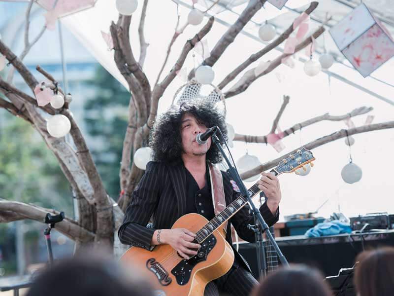 ステージには、想いを同じくするミュージシャンたちも駆けつけ、ピースフルな演奏を披露した。写真は、佐藤タイジさん。