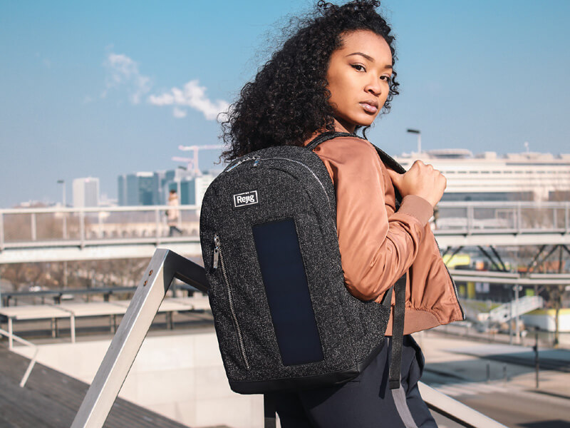 フランス西部メスの学生2人組が開発した太陽光パネル付きリュックサック「Rejig」は、いつでもどこでもスマホを充電できる。2017年末に試作品を作り2019年2月末には300点を売り切った。