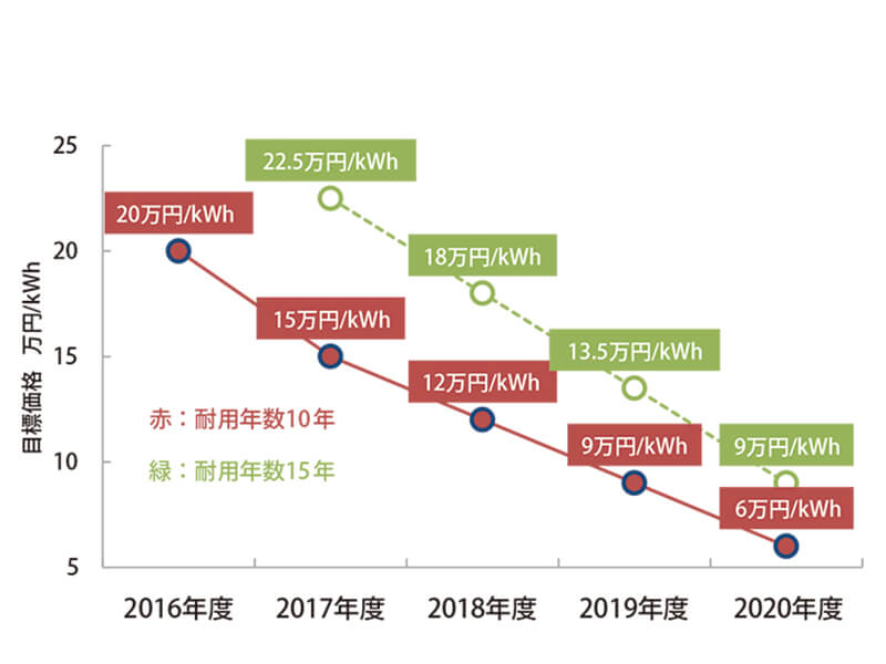 家庭用蓄電システムの目標価格 出典:資源エネルギー庁