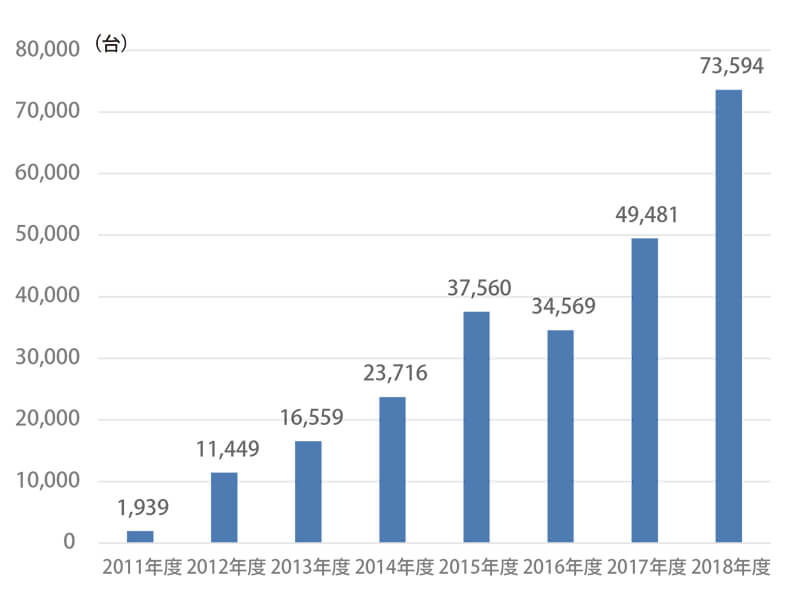 2018年度の出荷台数が7万台を超え、記録的出荷実績となった。うち9割が家庭用であり、余剰電力の自家消費向上に寄与することが期待されている。