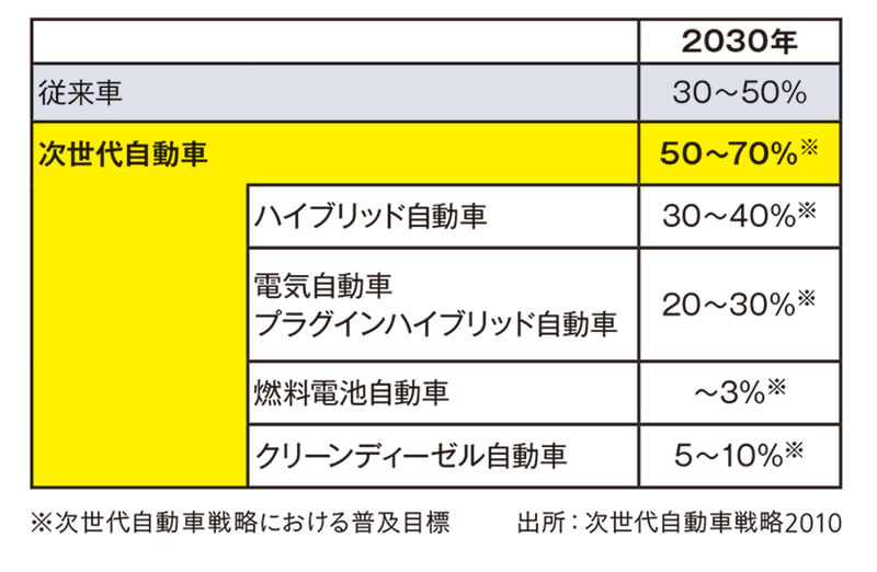 次世代自動車の普及目標 出所:次世代自動車戦略2010