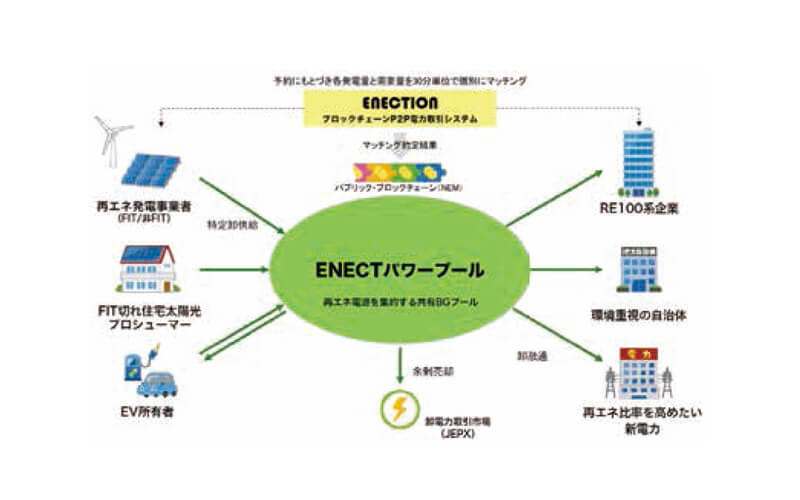 ENECTパワープールと名付けられたプラットフォームで、RE100企業や自治体などが、希望する電源を指定して電力を購入する。買取先との間で個別に価格を決められるので、卒FIT電力においては、RE100企業などに再エネ価値を評価した価格で買い取ってもらうこともできる。