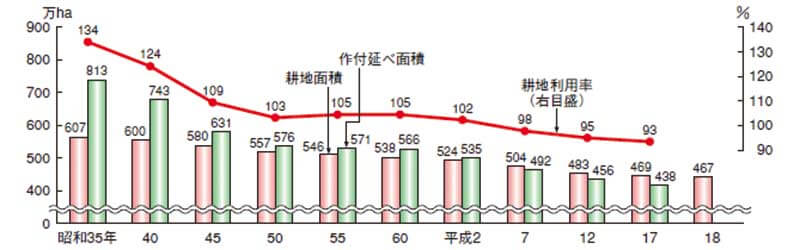 耕作放棄地と耕地利用率の推移