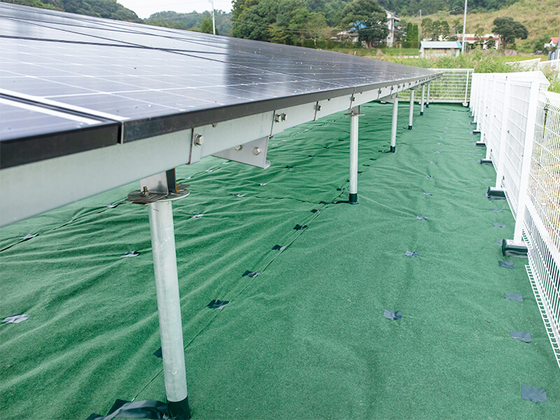 「防草シートなら、つねに雑草のない状態を維持できるので、雑草のせいで発電量が減ることはないし、長い目で見れば、草刈りを続けていくよりコストも抑えられる」と判断した。O&Mの観点から、防草シートに行きつくのは必然だったというわけだ。
