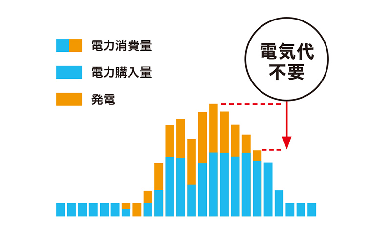 太陽光で発電した分だけ電気代を削減できる。