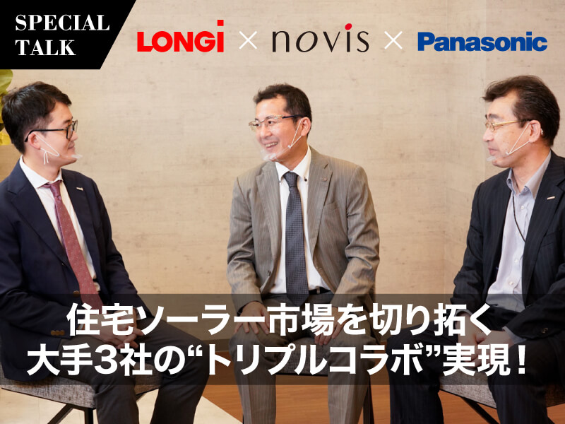 住宅用太陽光発電の普及に弾みをつける注目のコラボレーションが発表された。エネルギー分野の専門商社であるnovisと、LONGi・パナソニックによる協業だ。3社のキーマンに、その狙いと背景を語ってもらった。
