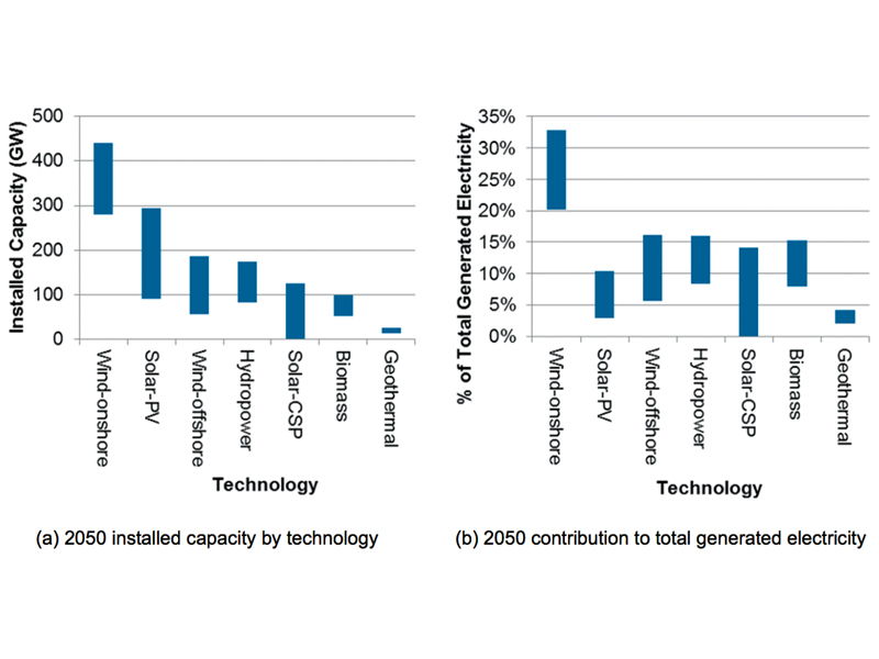 国立再生可能エネルギー研究所(NREL:The National Renewable Energy Laboratory)によると、既存のテクノロジーで、2050年の電力需要の80%を再エネで満たすことが「実行可能」、となっている。さらに、50%は変動性のある風力と太陽光発電で満たすことができるとも研究結果が出ている。