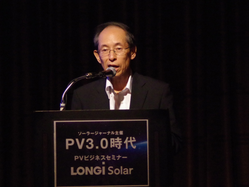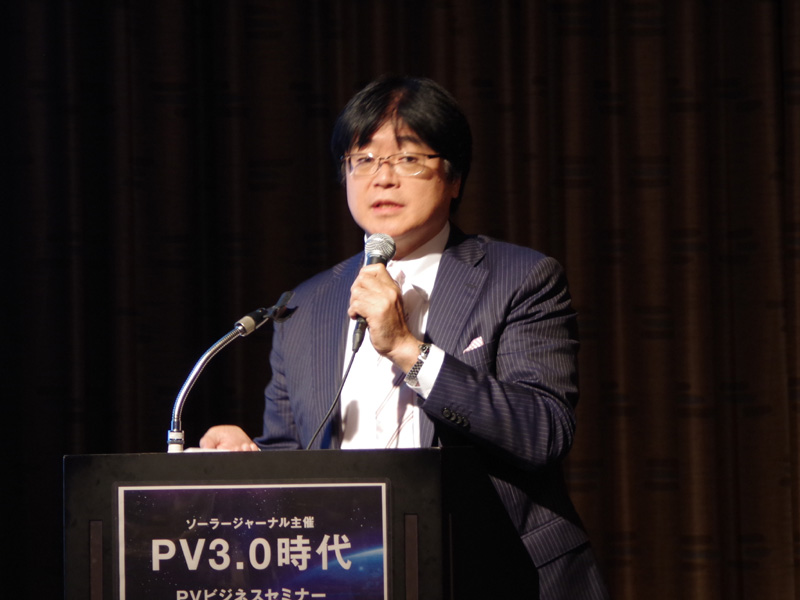 資源総合システム一木氏は、太陽光発電システムの導入見通しと、エネルギーミックス実現に向けた主要課題について提言。国内外のマーケット情報を交えながら、業界が目指すべき方向性を述べた。