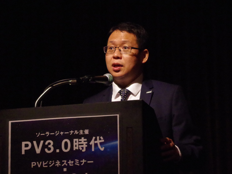 モジュールメーカーとして業界を牽引するロンジソーラーは、単結晶シリコンモジュールのメリットや魅力について講演。同社の強みである圧倒的な技術力に注目が集まった。