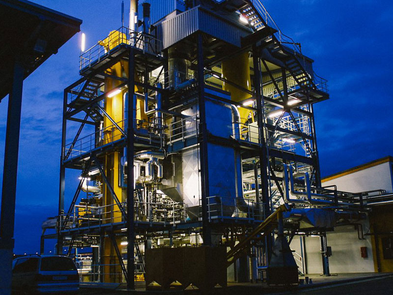 バイオマスとの大きな違いは、電気への変換効率の高さ。一般的なバイオマス発電の場合、チップを燃やして電気に変換する効率は20%程度です。しかし当社は、木質バイオガス先進国であるオーストリアの先端技術を採用することで、80%という超高効率を実現しました。詳しい説明はここでは割愛しますが、「チップを燃やさずにエネルギーを抽出する」木質バイオガス発電には、非常に高度な技術が必要となります。
