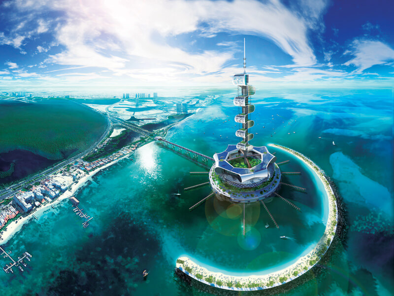 メキシコ南東部、カリブ海に面したユカタン半島のリゾート地カンクン。同所はメキシコ政府がリゾート開発を始めて2020年で50年になるが、その記念年にアメリカの建築会社Richard’s Architecture + Designによるエコ・リゾート「グランドカンクン」の構想がある。