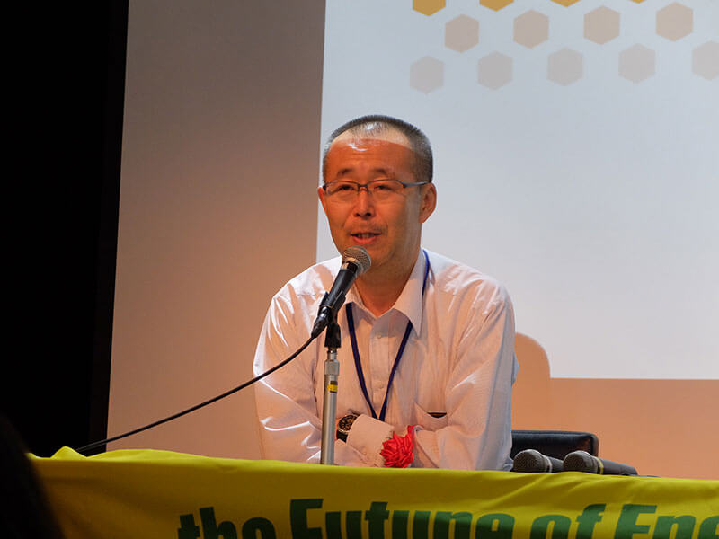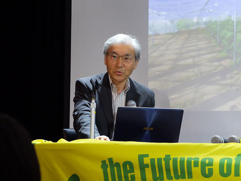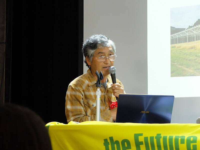 わくわくソーラーファームの重家氏は、地域の状況を「かつては小さな農家が里山の多面的循環機能を守ってきたが、今日では不採算な稲作と高齢化が里山を脅かしている」と表現。「耐える農家から、持続可能な自然エネルギー農家へ」の転換を訴えた。ソーラーシェアリングを行うことで赤字構造から脱却できることを、具体的な数字で示し、シンポジウム参加者の関心を集めていた。
