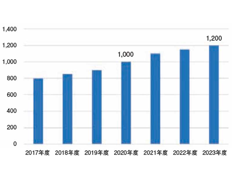 国内の家庭用蓄電池市場は、2023年度に約1200億円になる。卒FITを背景に、蓄電システムの需要が高まった結果だ。出典:日本能率協会総合研究所(2019年3月29日発表)